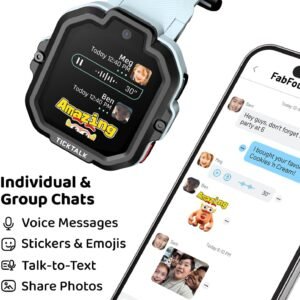การส่งข้อความที่ปลอดภัย: TickTalk 5 มอบประสบการณ์การส่งข้อความที่ครอบคลุมที่สุดในสมาร์ทวอทช์สำหรับเด็ก เพลิดเพลินกับการสนทนาเป็นข้อความได้อย่างราบรื่น การตอบกลับที่รวดเร็ว การบันทึกเสียง อีโมจิ GIF และการแชทกลุ่ม ทั้งหมดนี้ปลอดภัยด้วยการเข้ารหัสแบบต้นทางถึงปลายทาง เชื่อมต่อกับครอบครัวของคุณได้อย่างมั่นใจ พร้อมความปลอดภัยและความเป็นส่วนตัว